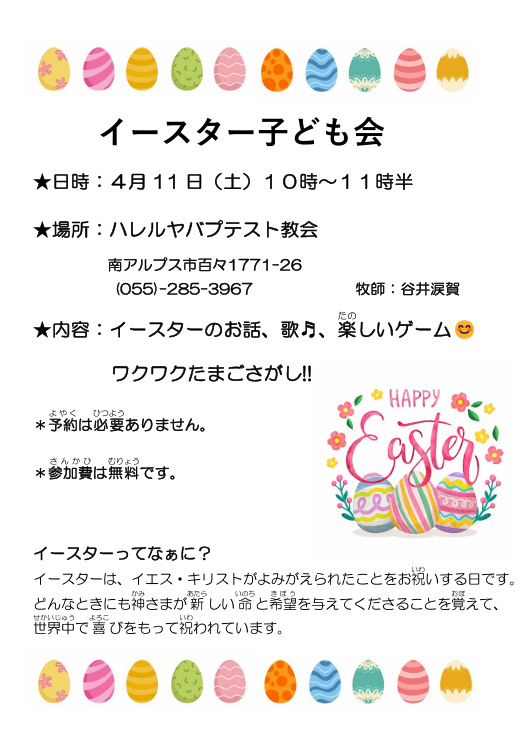 イースターのお話し、うた、ゲーム、たまごさがしをするよ!!